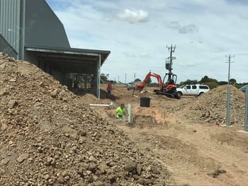 Geoff & Matt Hayward are doing an awesome job with the Shed construction, and Kyle Steicke Plumbing and his helpers are busy setting up the site drainage. Gary Schmidt Electrical have all the prep work done and are ready to go.